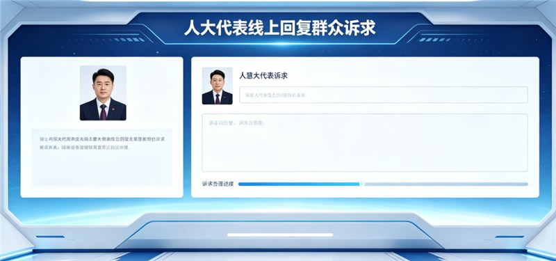 整合履职档案、活动签到、视察调研、学习培训、建议提交、群众留言办理等功能;代表可随时随地接收民意、在线答复、提交议案建议、记录履职轨迹,自动生成履职报告,实现履职全留痕、可量化、可考核。