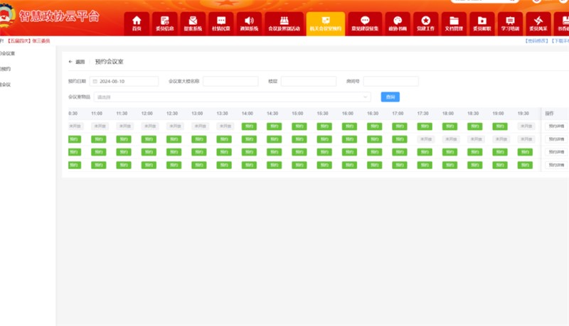 智慧政协云平台是如何实现会议室预约和使用的,在通过信息化手段,实现会议室资源的智能化管理,提高会议室预约的效率和准确性,减少资源浪费,同时提升用户体验。系统主要实现以下功能: